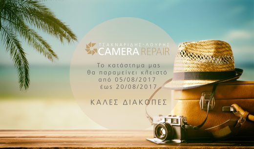 Το κατάστημα θα παραμείνει κλειστό από 05/08/2017 έως 20/08/2017. Σε αυτό το διάστημα δεν θα υπάρχει τηλεφωνική εξυπηρέτηση πελατών. Για επείγοντα ερωτήματα μπορείτε να στείλετε ένα email στο info @ camerarepair.gr και θα βάλουμε τα δυνατά μας να σας εξυπηρετήσουμε. Με εκτίμηση, Η ομάδα του Camera Repair